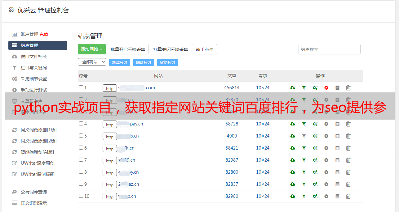 python实战项目,获取指定网站关键词百度排行,为seo提供参考资料