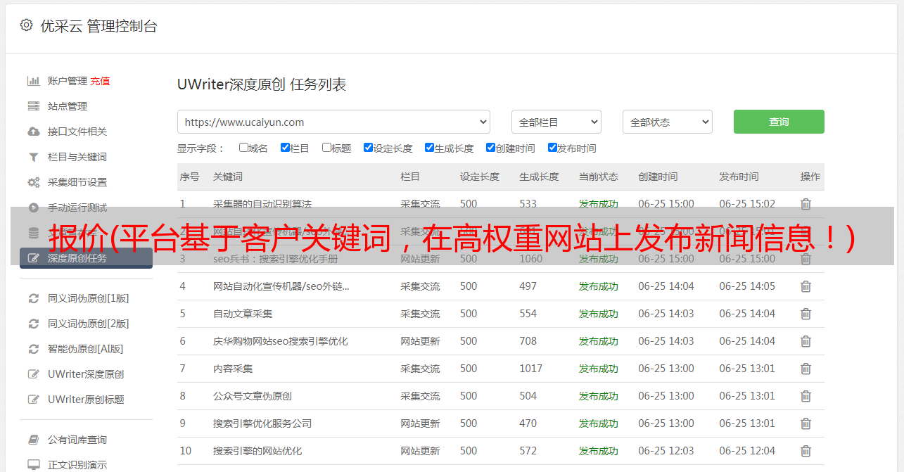 报价(平台基于客户关键词,在高权重网站上发布新闻信息!)