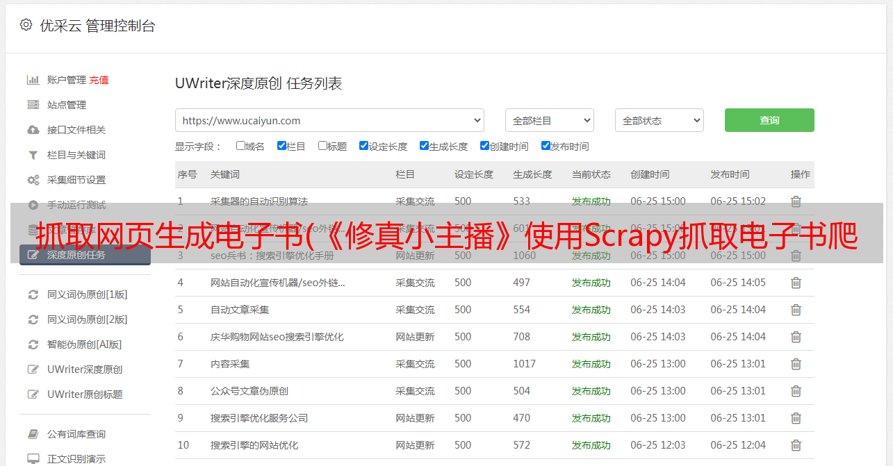 优采云 发布时间: 2021-09-11 19:15抓取网页生成电子书(《修真小主播》使用Scrapy抓取电子书爬虫思路怎么抓取数据)