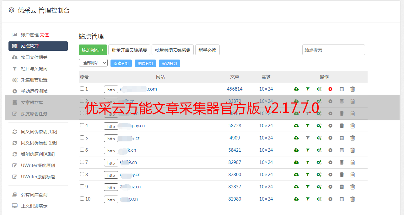 优采云 发布时间: 2020-08-22 15:18优采云万能文章采集器官方版 v2.17.7.0