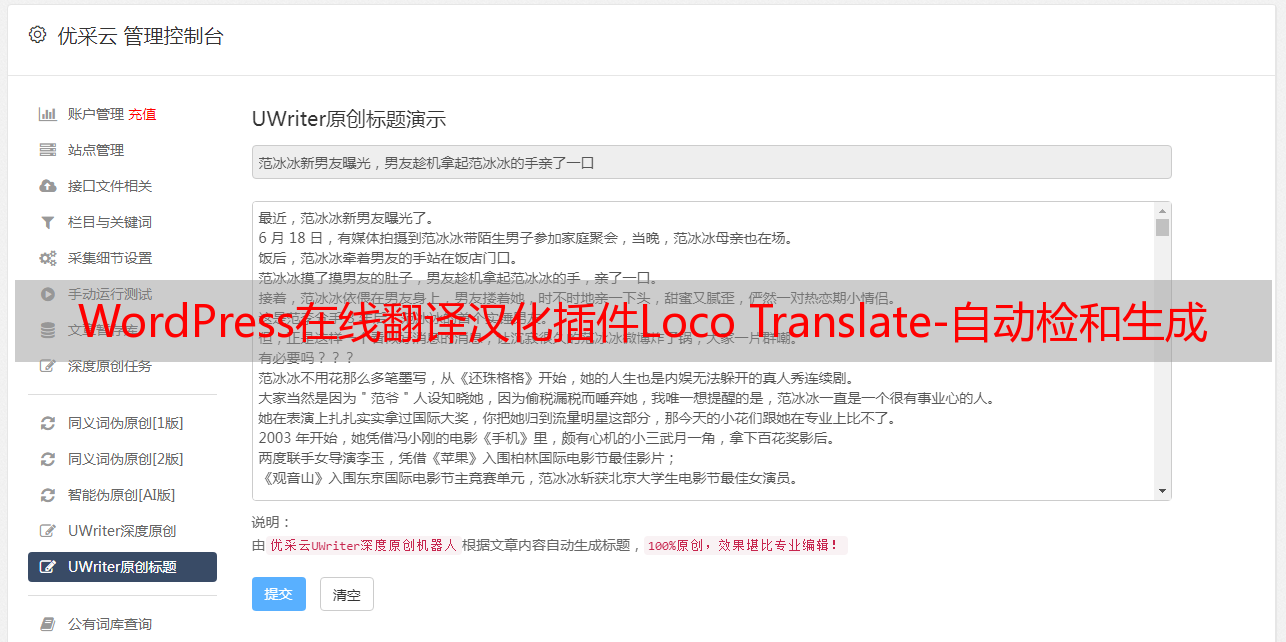 优采云 发布时间: 2020-08-22 15:39WordPress在线翻译汉化插件Loco Translate-自动检和生成