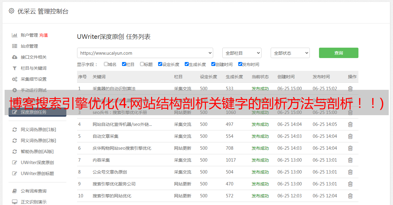 优采云 发布时间: 2021-09-12 19:09博客搜索引擎优化(4.网站结构剖析关键字的剖析方法与剖析!!)