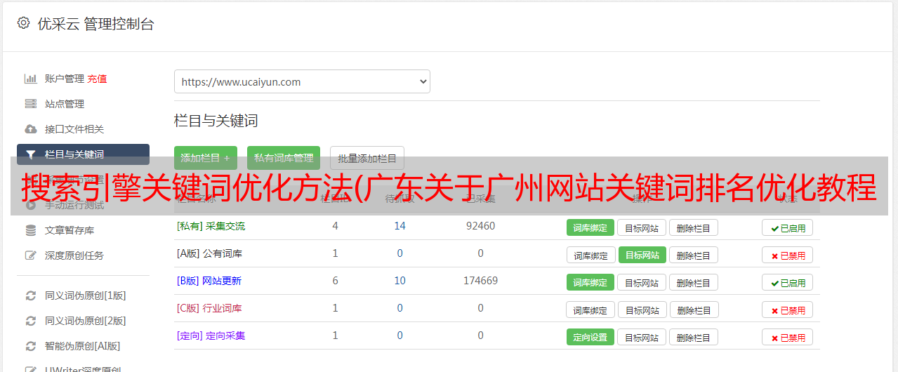 优采云 发布时间: 2021-09-12 19:20搜索引擎关键词优化方法(广东关于广州网站关键词排名优化教程的介绍)
