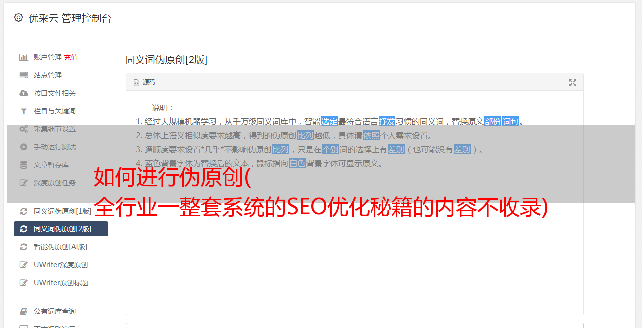 如何进行伪原创( 全行业一整套系统的SEO优化秘籍的内容不收录)