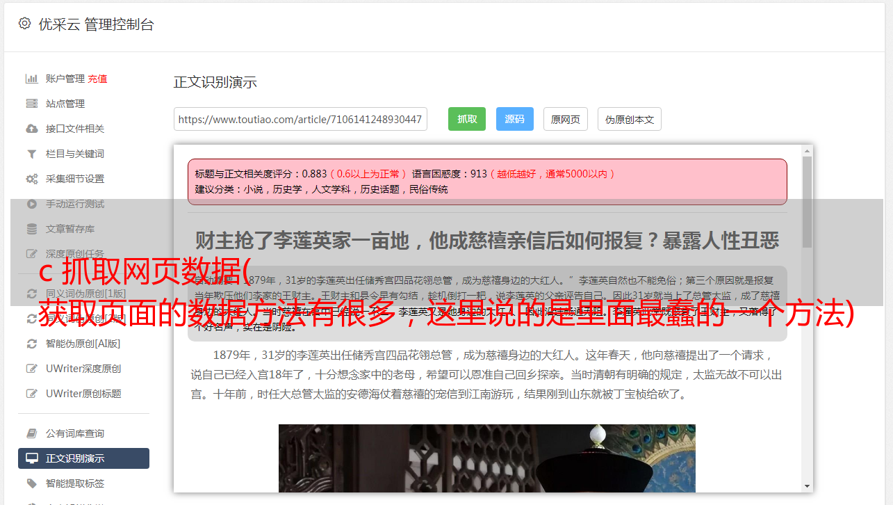 c 抓取网页数据( 获取页面的数据方法有很多,这里说的是里面最蠢的一个方法)