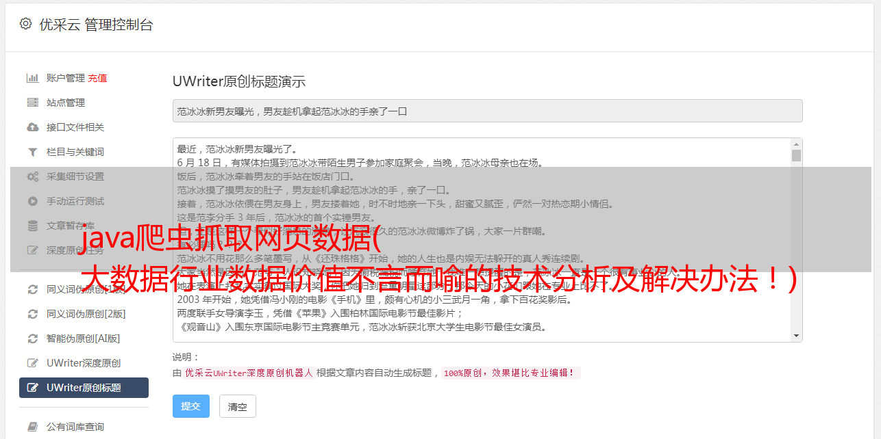 还有一些ruby和php爬虫,这里不多评论。确实有一些非常小的数据采集任务,用ruby或者php非常方便。但是,要选择这些语言的开源爬虫,一方面需要调查相关的生态系统,另一方面,这些开源爬虫可能会产生一些你找不到的bug(人少信息少) )