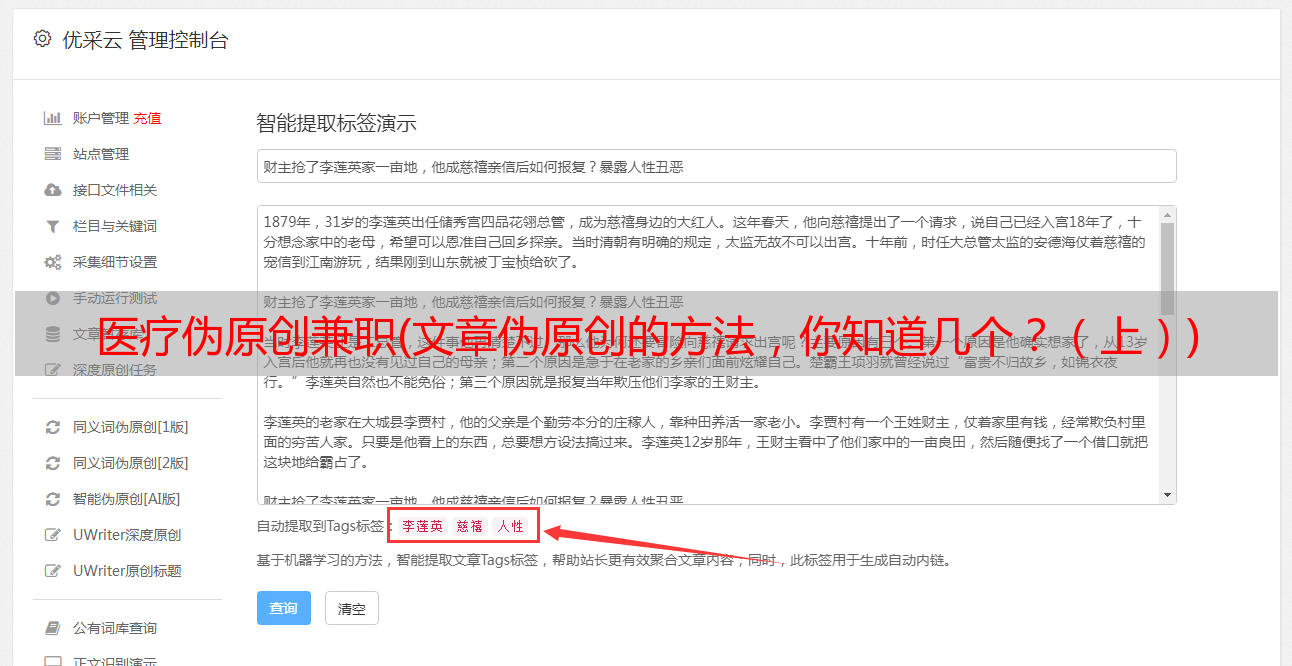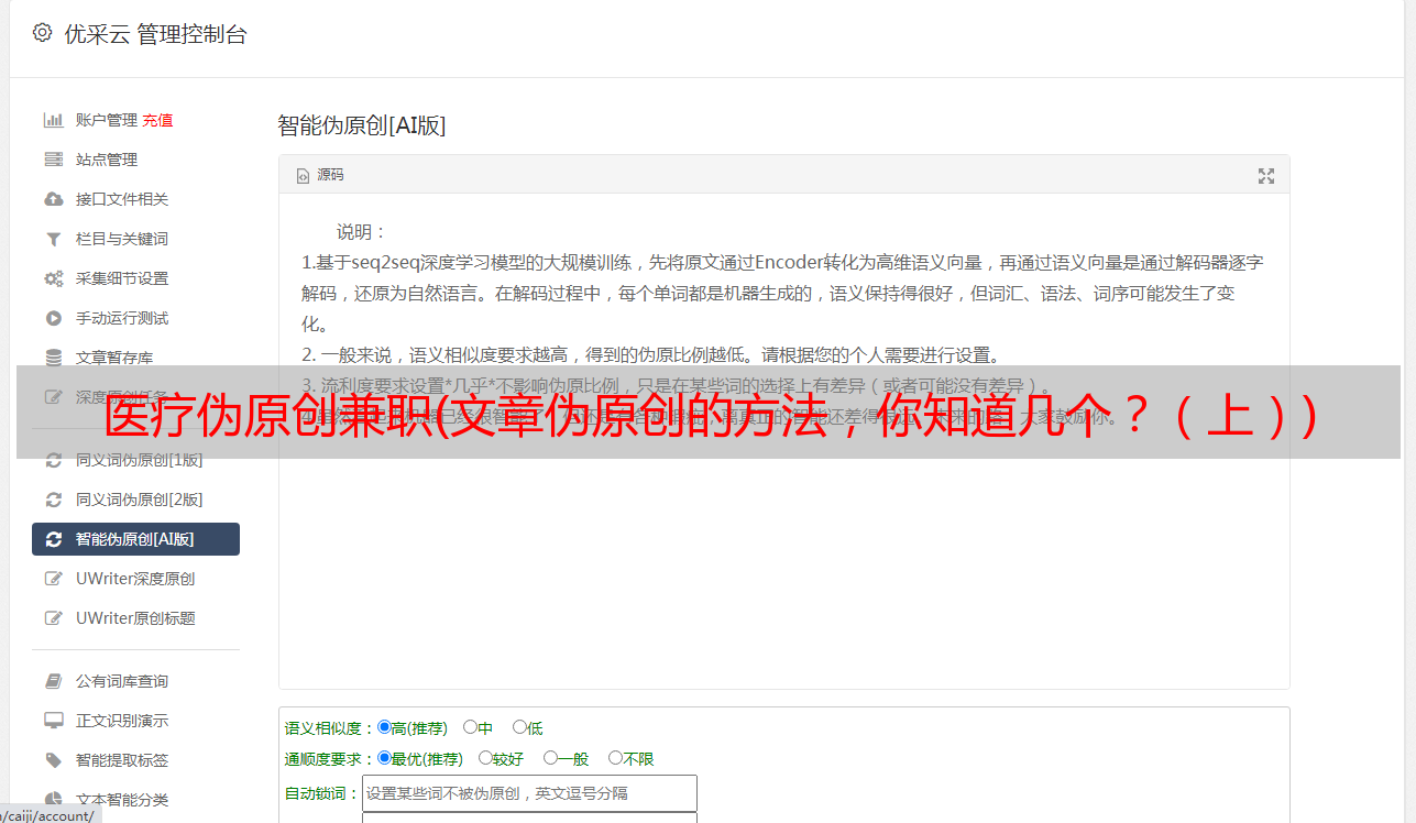优采云 发布时间: 2021-09-13 05:11医疗伪原创*敏*感*词*(文章伪原创的方法,你知道几个?(上))
