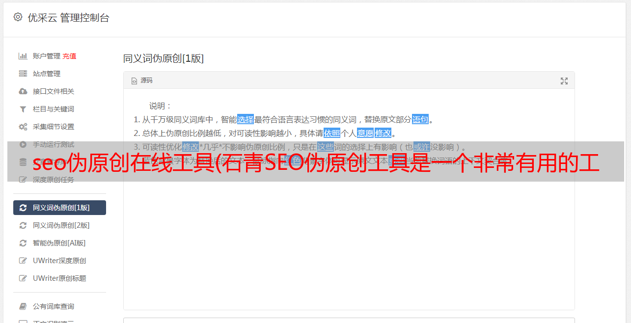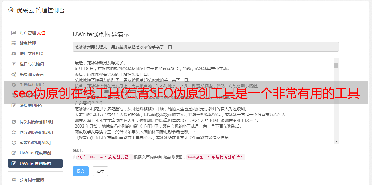 seo伪原创在线工具(石青SEO伪原创工具是一个非常有用的工具,我真的不知道怎么写文章)