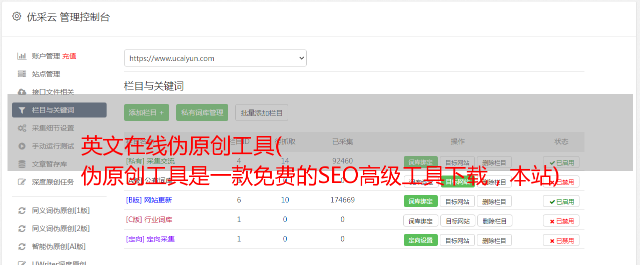 英文在线伪原创工具( 伪原创工具是一款免费的SEO高级工具下载,本站)