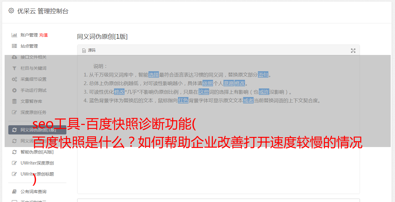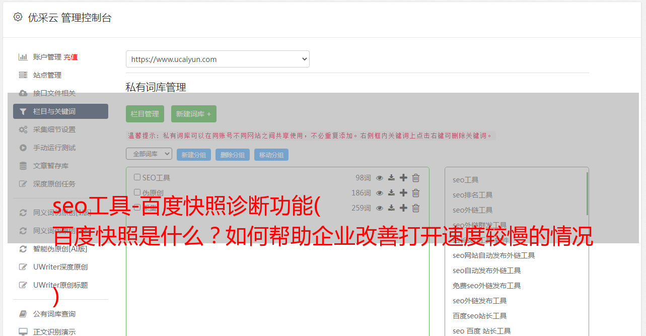 优采云 发布时间: 2021-09-14 16:16seo工具-百度快照诊断功能(