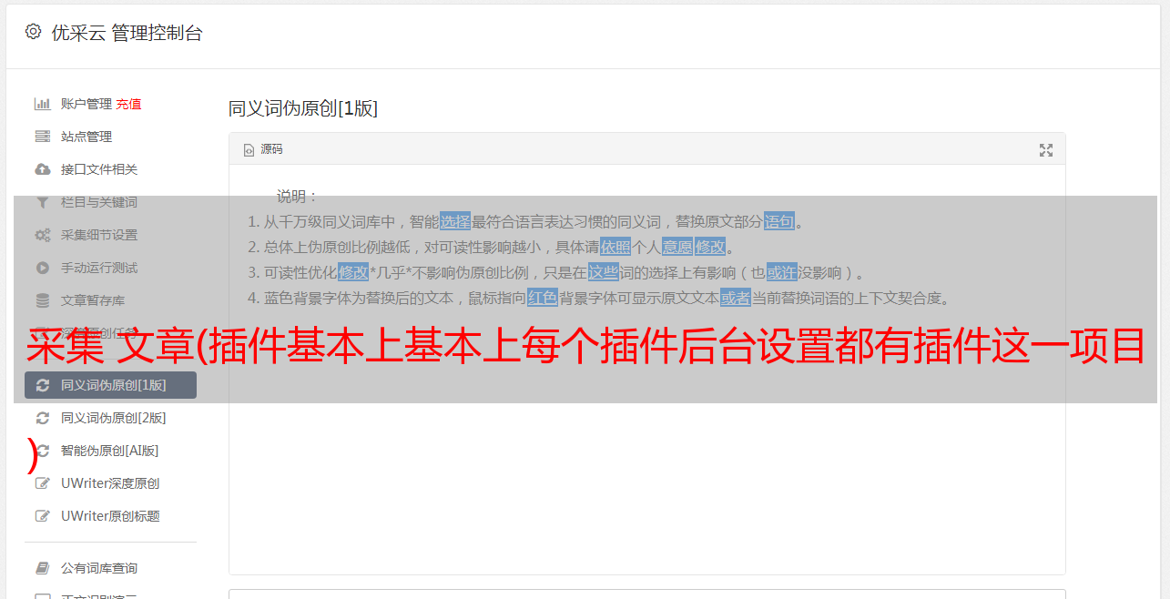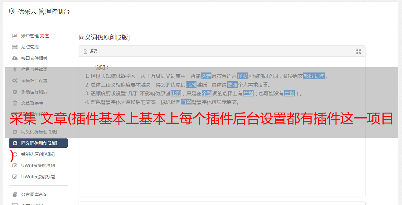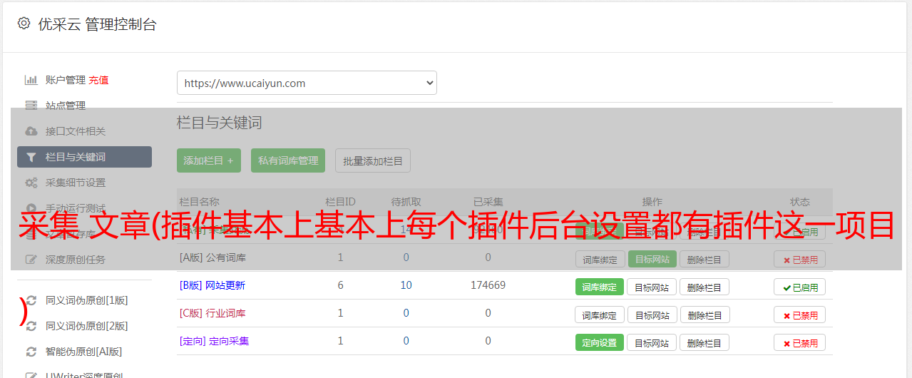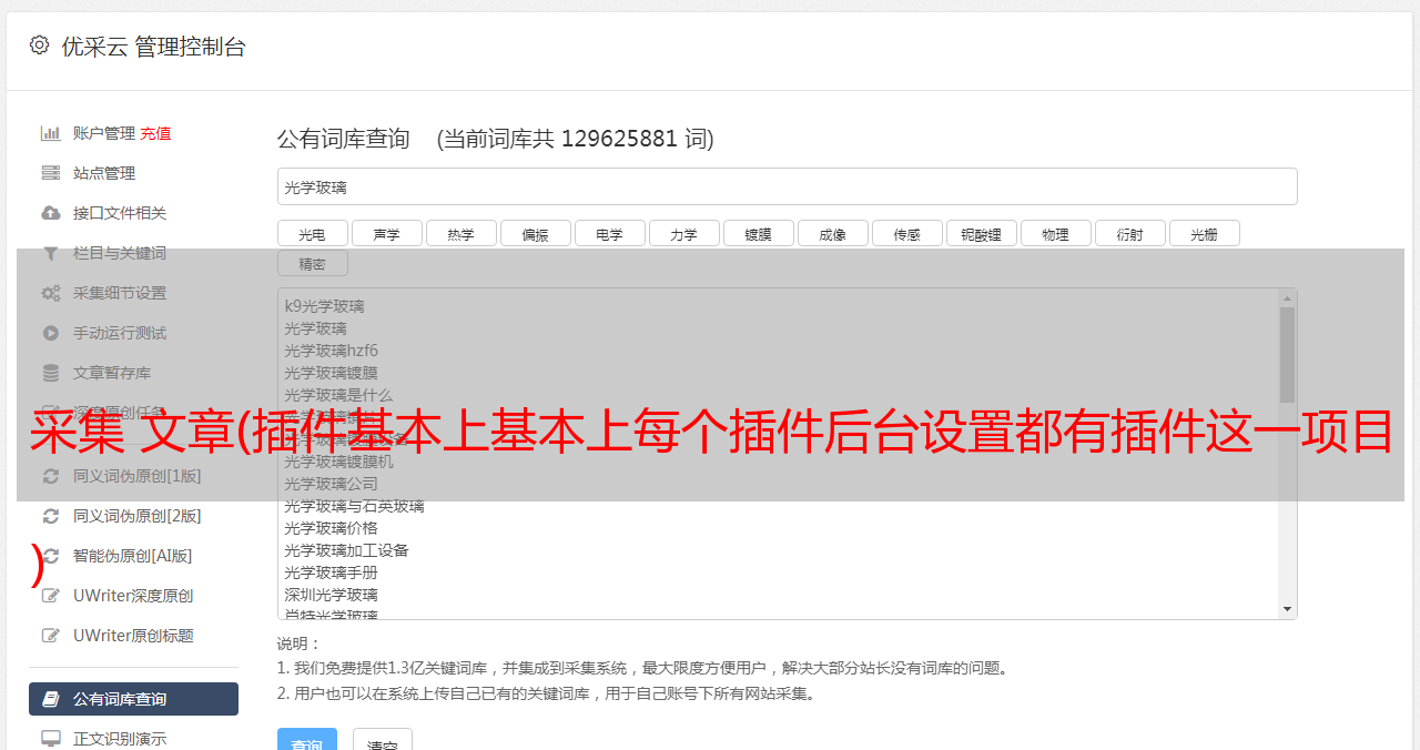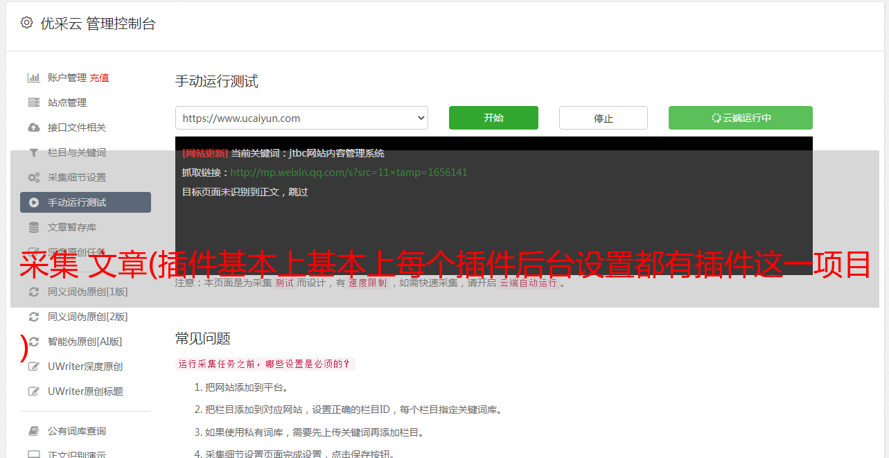 优采云 发布时间: 2021-09-15 08:02采集 文章(插件基本上基本上每个插件后台设置都有插件这一项目