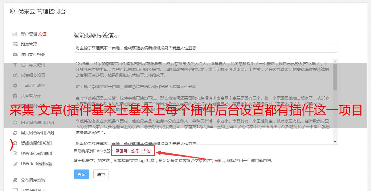采集 文章(插件基本上基本上每个插件后台设置都有插件这一项目 )