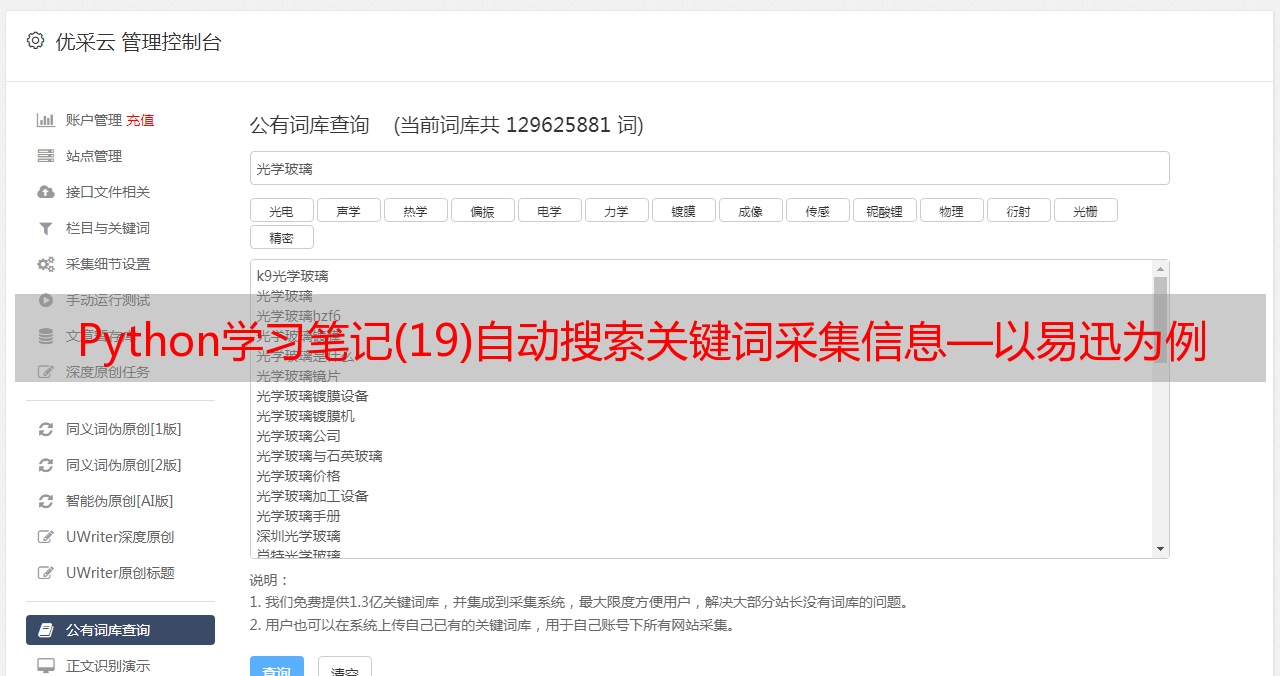 优采云 发布时间: 2020-08-25 00:01Python学习笔记(19)自动搜索关键词采集信息—以易迅为例
