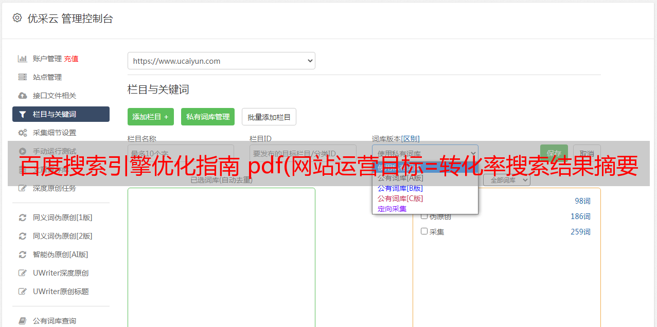 优采云 发布时间: 2021-09-16 12:07百度搜索引擎优化指南 pdf(网站运营目标=转化率搜索结果摘要的一个选择目标)