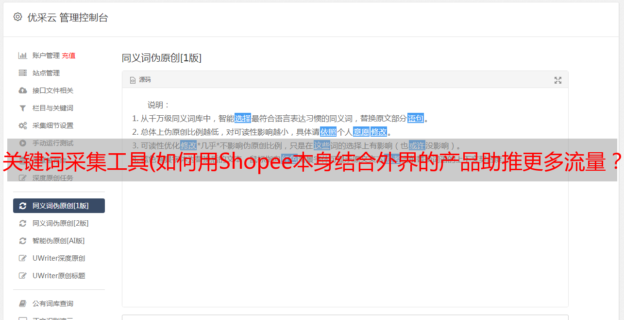 优采云 发布时间: 2021-09-16 23:17关键词采集工具(如何用Shopee本身结合外界的产品助推更多流量?