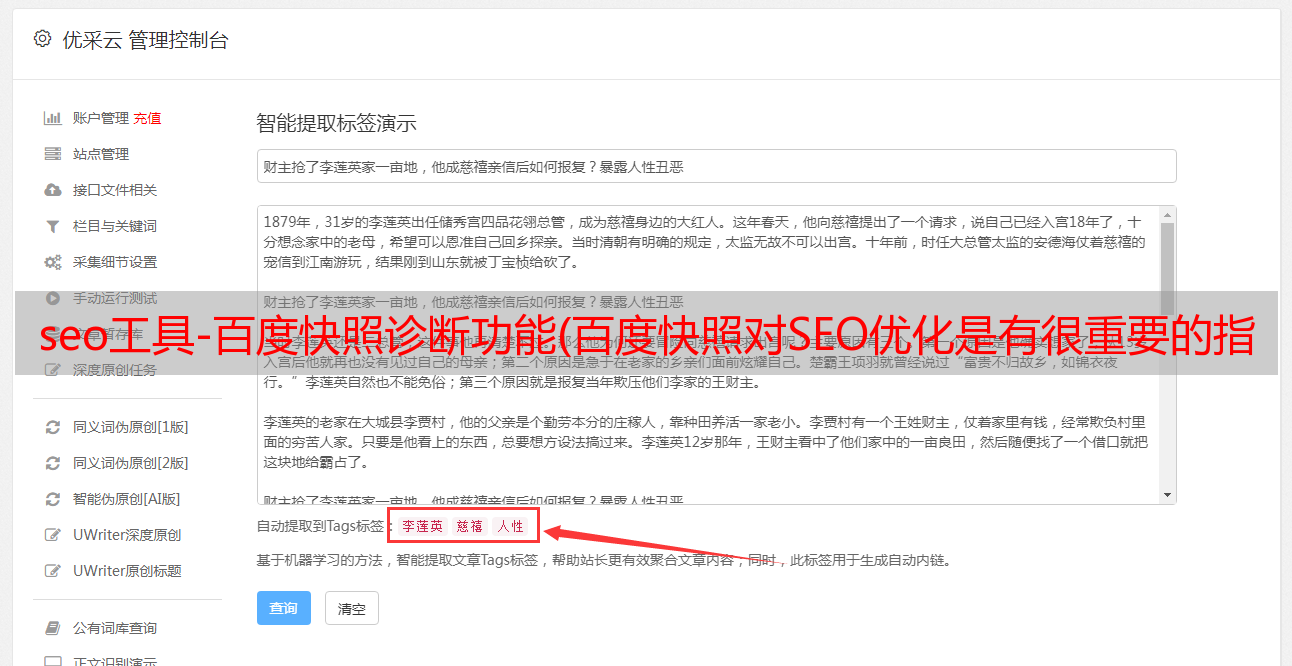 优采云 发布时间: 2021-09-17 10:04seo工具-百度快照诊断功能(百度快照对SEO优化是有很重要的指导作用吗?)