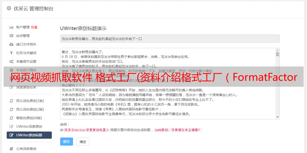 优采云 发布时间: 2021-09-17 12:19网页视频抓取软件 格式工厂(资料介绍格式工厂(FormatFactory)-上海怡健医学)