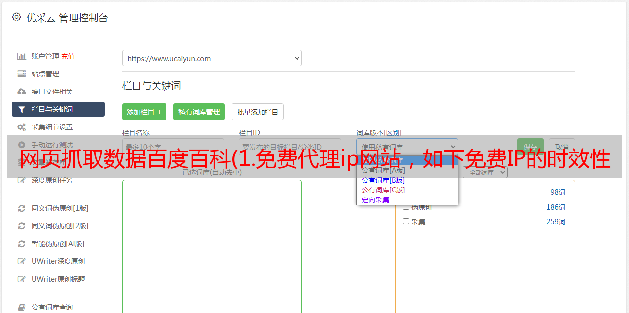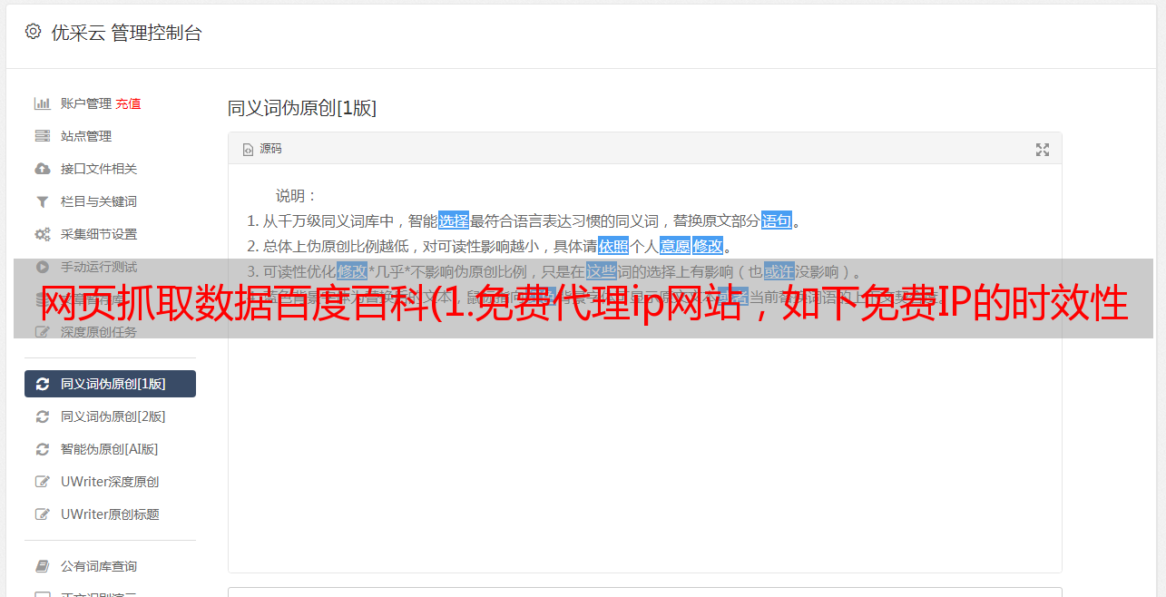 优采云 发布时间: 2021-09-17 20:27网页抓取数据百度百科(1.免费代理ip网站,如下免费IP的时效性图演示)