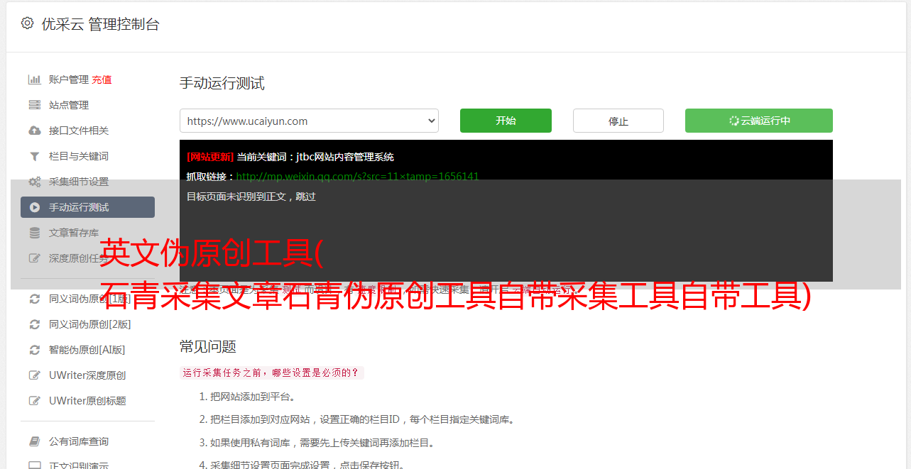 石青采集文章石青伪原创工具自带采集工具自带工具)