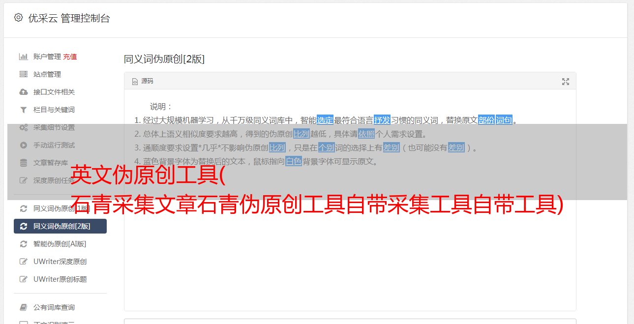 英文伪原创工具( 石青采集文章石青伪原创工具自带采集工具自带工具)