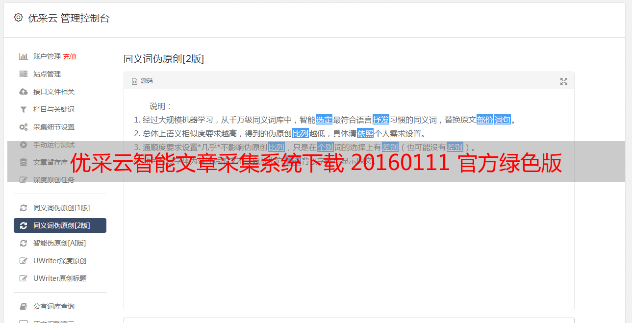 优采云智能文章采集系统下载 20160111 官方绿色版