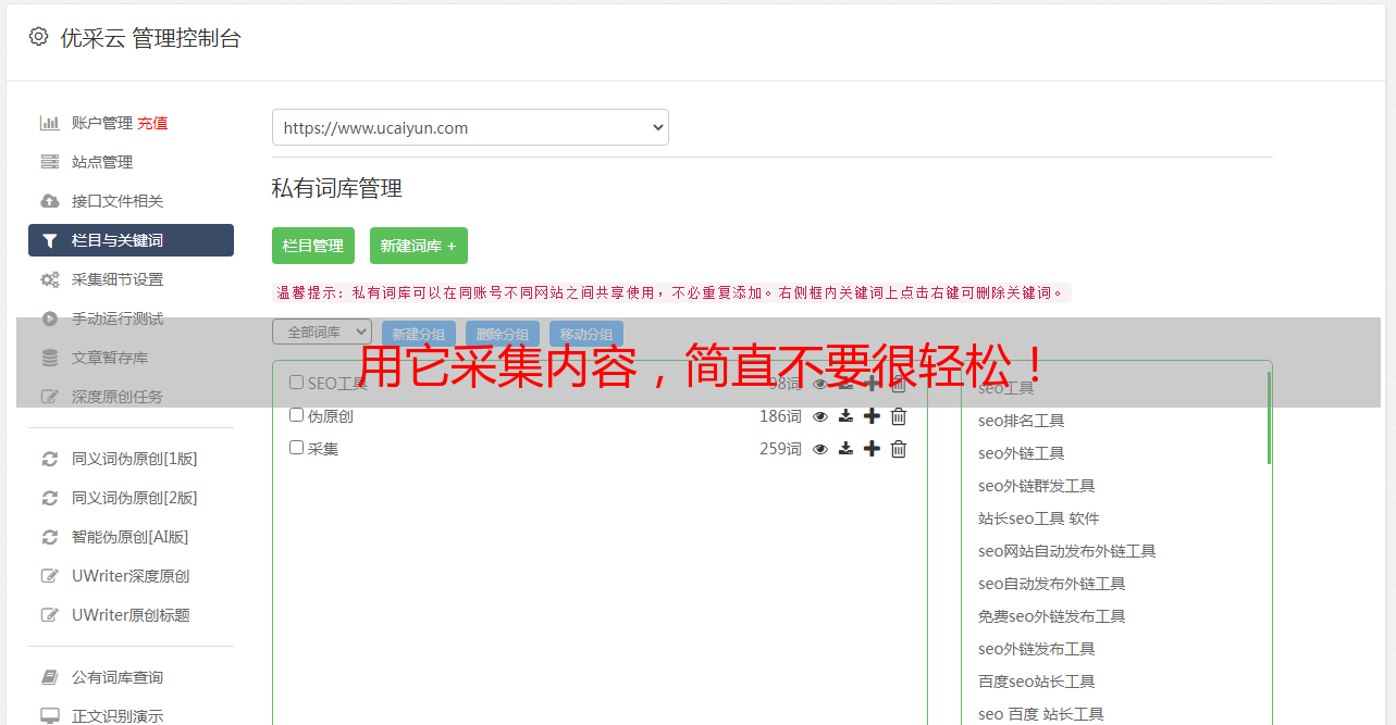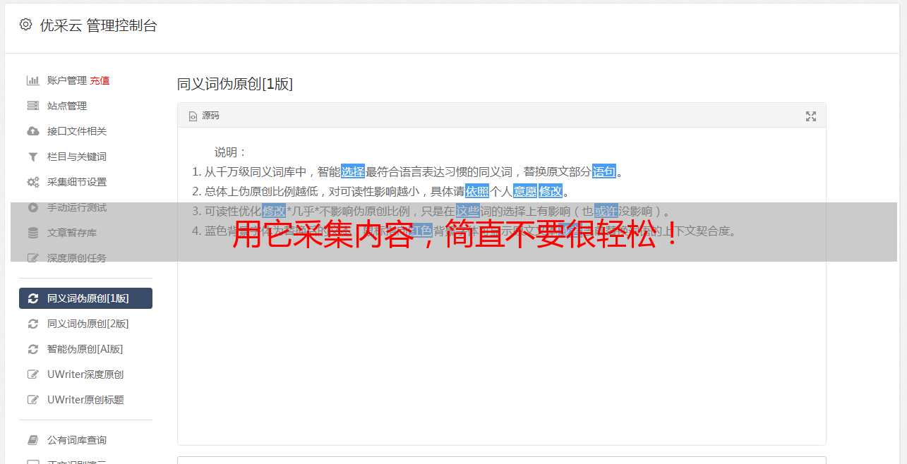 优采云采集是一款自媒体素材搜索、文章原创、一键发布的营运工具,有效提高新媒体营运工作效率,降低企业成本。