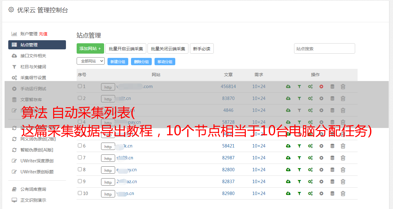 算法 自动采集列表( 这篇采集数据导出教程,10个节点相当于10台电脑分配任务)