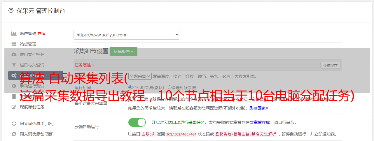 这篇采集数据导出教程,10个节点相当于10台电脑分配任务)