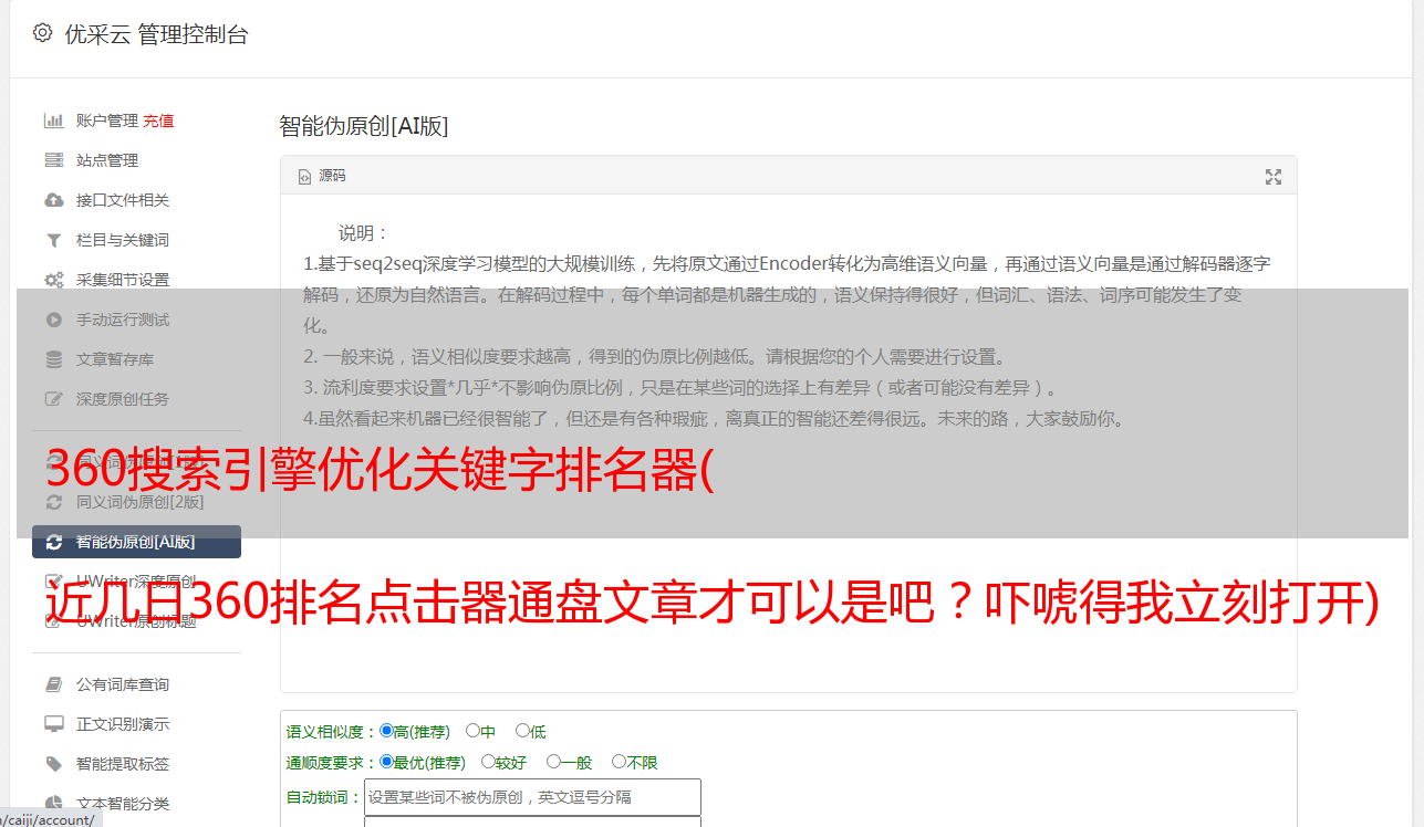 优采云 发布时间: 2021-09-19 00:21360搜索引擎优化关键字排名器(