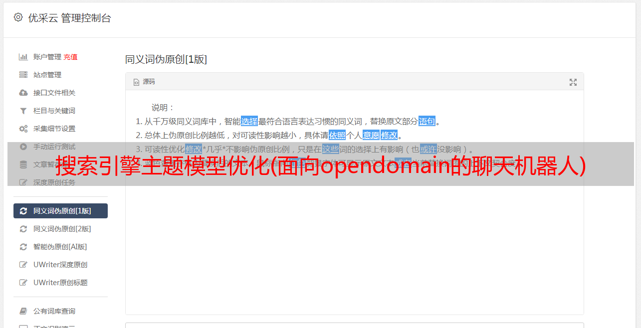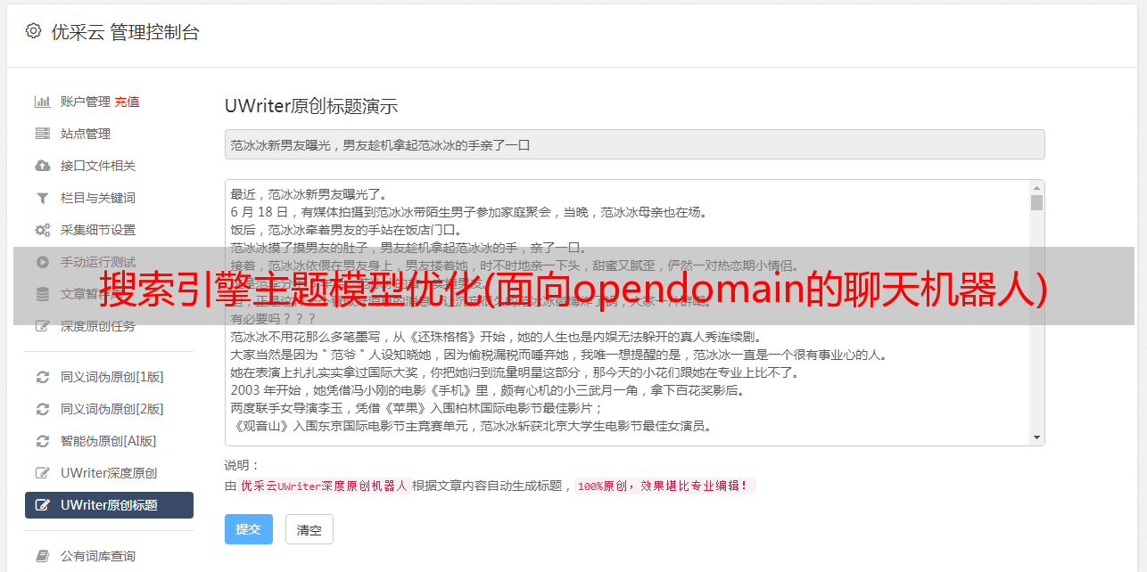 优采云 发布时间: 2021-09-19 05:16搜索引擎主题模型优化(面向opendomain的聊天机器人)