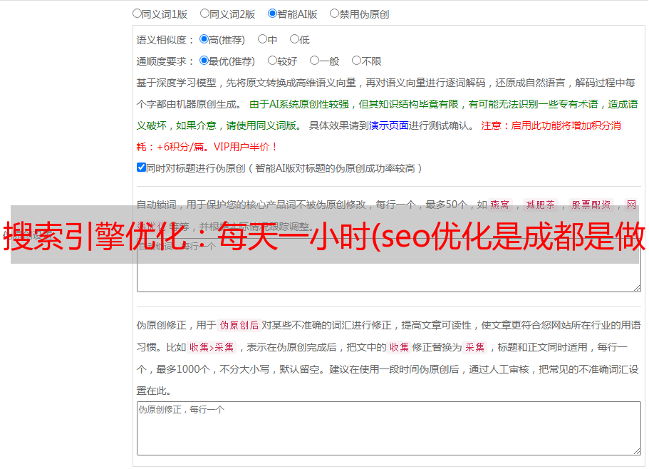 搜索引擎优化:每天一小时(seo优化是成都是做seo**台的主要渠道)