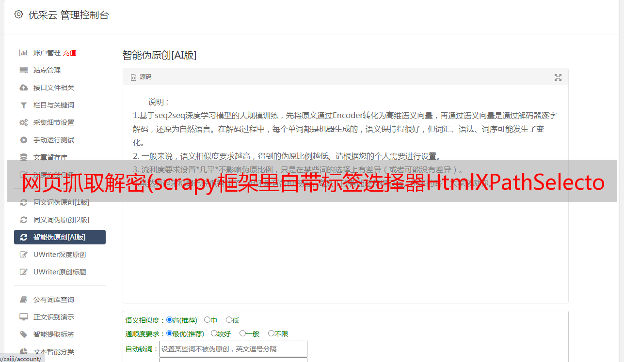 优采云 发布时间: 2021-09-19 20:21网页抓取解密(scrapy框架里自带标签选择器HtmlXPathSelector,具体的使用规则)