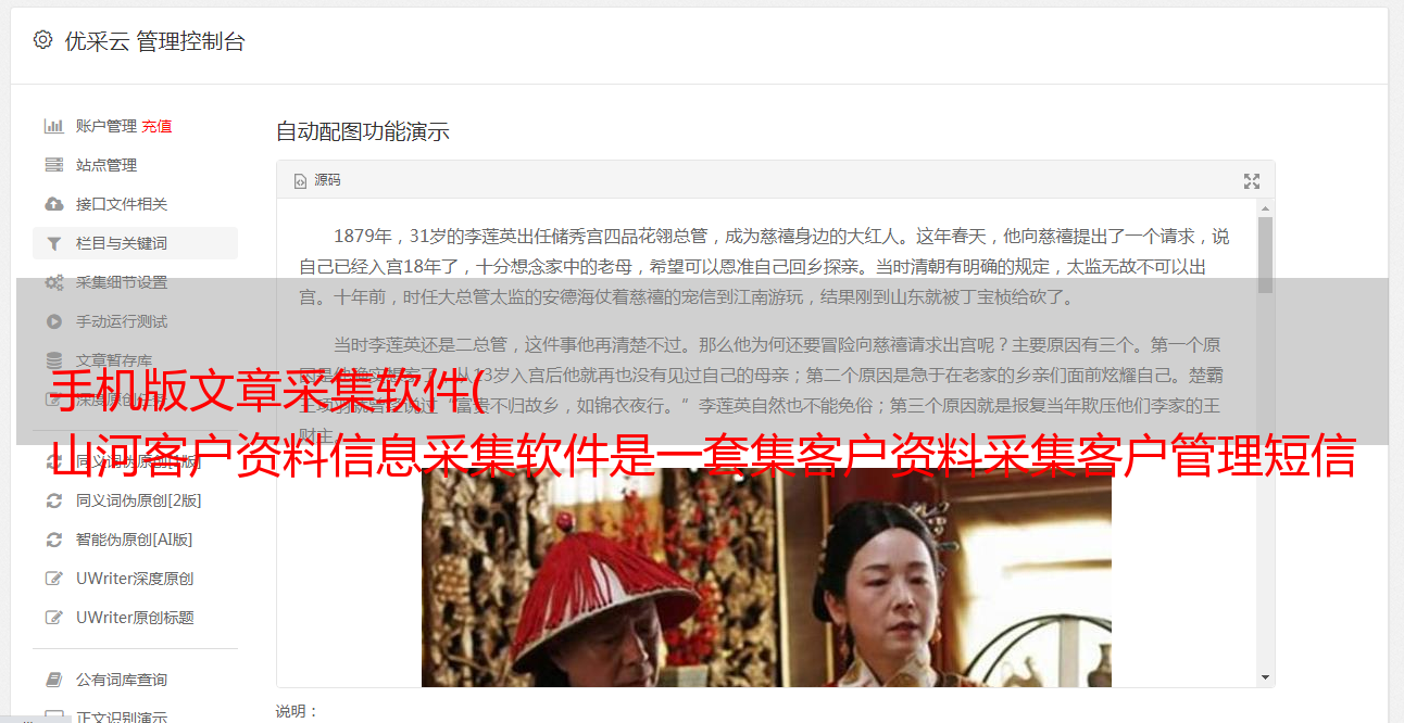 优采云 发布时间: 2021-09-19 22:01手机版文章采集软件(