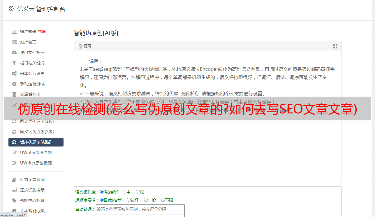 优采云 发布时间: 2021-09-20 02:04伪原创在线检测(怎么写伪原创文章的?如何去写SEO文章文章)