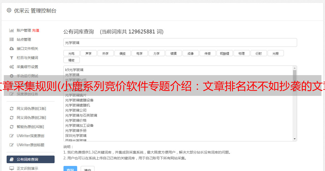 优采云 发布时间: 2021-09-20 04:23文章采集规则(小鹿系列竞价软件专题介绍:文章排名还不如抄袭的文章