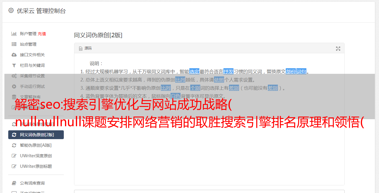 优采云 发布时间: 2021-09-20 07:21解密seo:搜索引擎优化与网站成功战略(