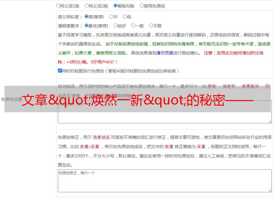 用户可在页面中点击"原创"功能,优采云采集将对所需原创的文章并进行单项原创。