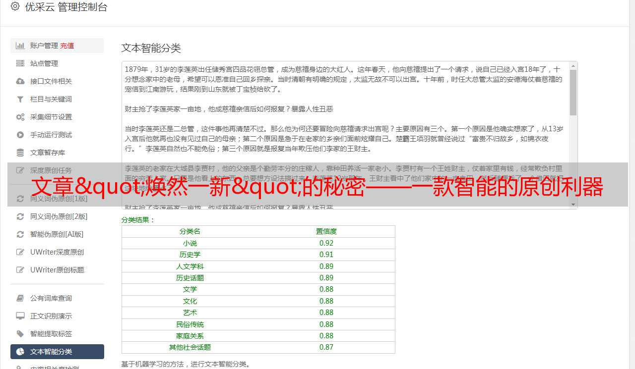 原创不难,但要讲求质量和效率并存,还真不是几个月才能练下来的。冰冻三尺非一日之寒,未必就没有解决的办法了吗?别急~小编这就给你们介绍一款除了能提高内容的质量,还能提高工作效率的在线智能原创工具——优采云采集。