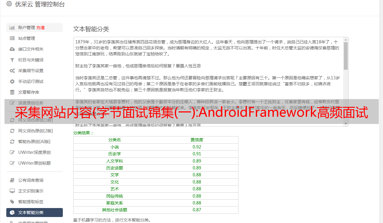 同时,由于业务需要,比如智能推荐,我们需要对网站进行预处理,比如标签,这时需要一个网站管理系统
