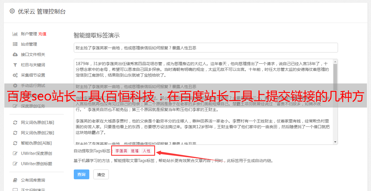 优采云 发布时间: 2021-09-23 01:01百度seo站长工具(百恒科技:在百度站长工具上提交链接的几种方法)