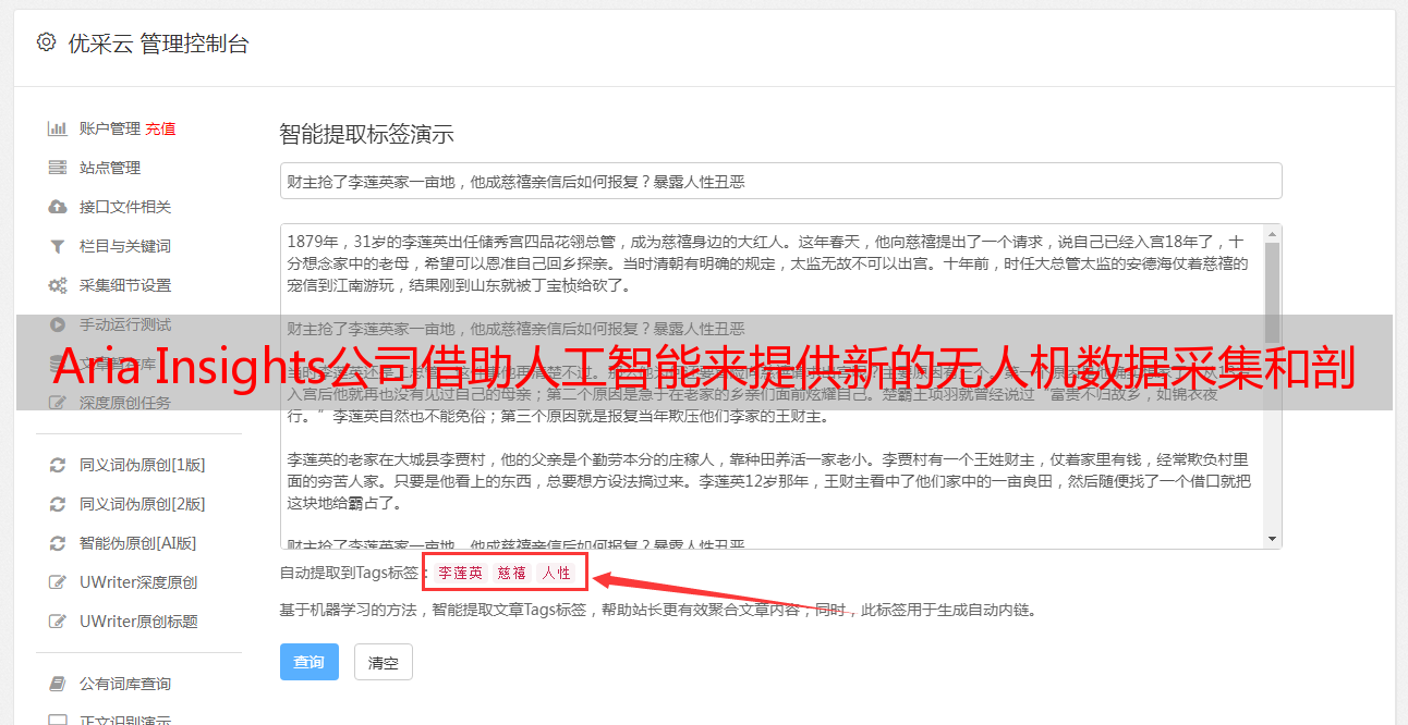 优采云 发布时间: 2020-08-26 04:52Aria Insights公司借助人工智能来提供新的无人机数据采集和剖析服务