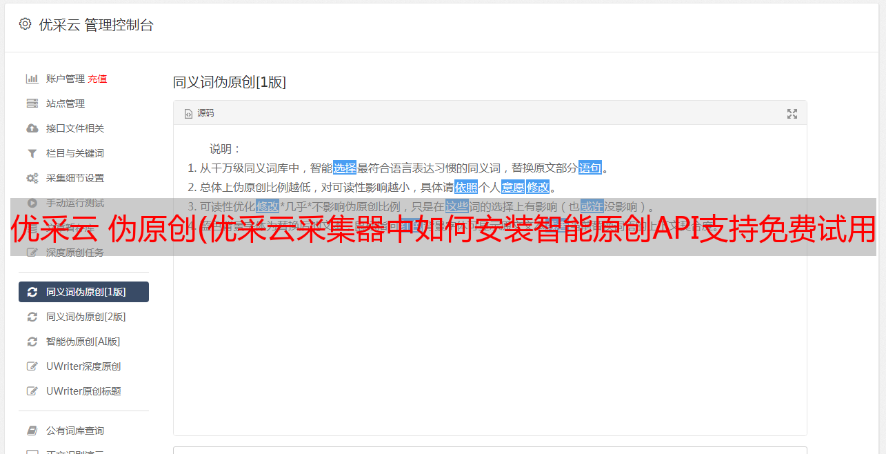 优采云 伪原创(优采云采集器中如何安装智能原创API支持免费试用(组图))