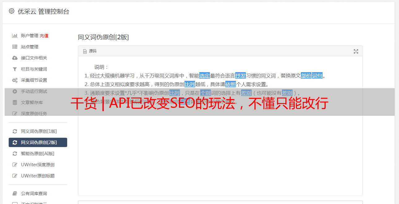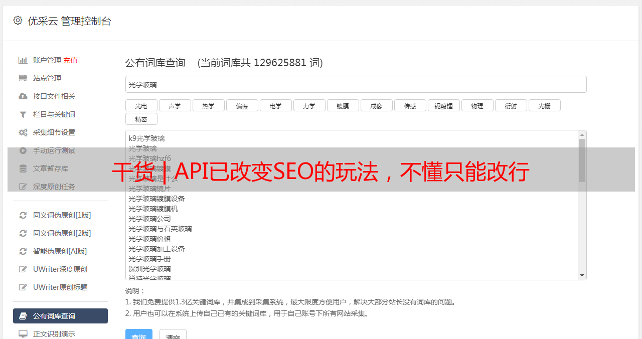 优采云 发布时间: 2020-08-26 05:47干货 | API已改变SEO的玩法,不懂只能改行