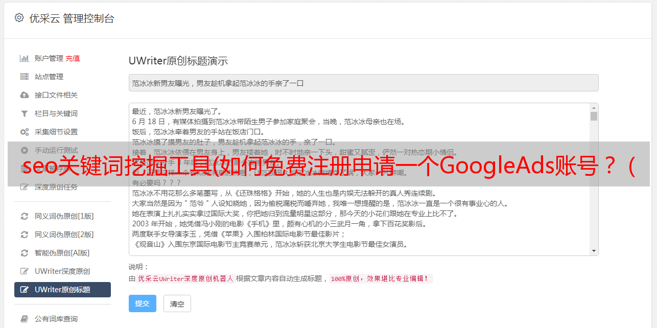 优采云 发布时间: 2021-09-23 13:18seo关键词挖掘工具(如何免费注册申请一个GoogleAds账号?(上))
