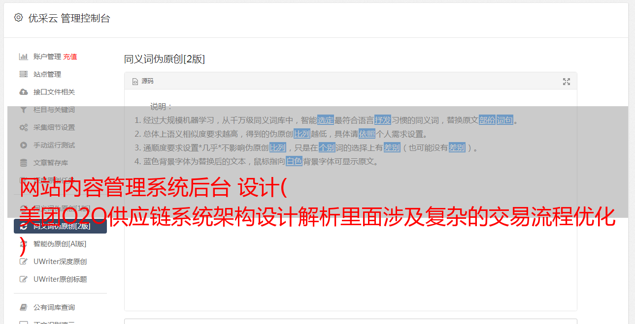 网站内容管理系统后台 设计( 美团O2O供应链系统架构设计解析里面涉及复杂的交易流程优化 )