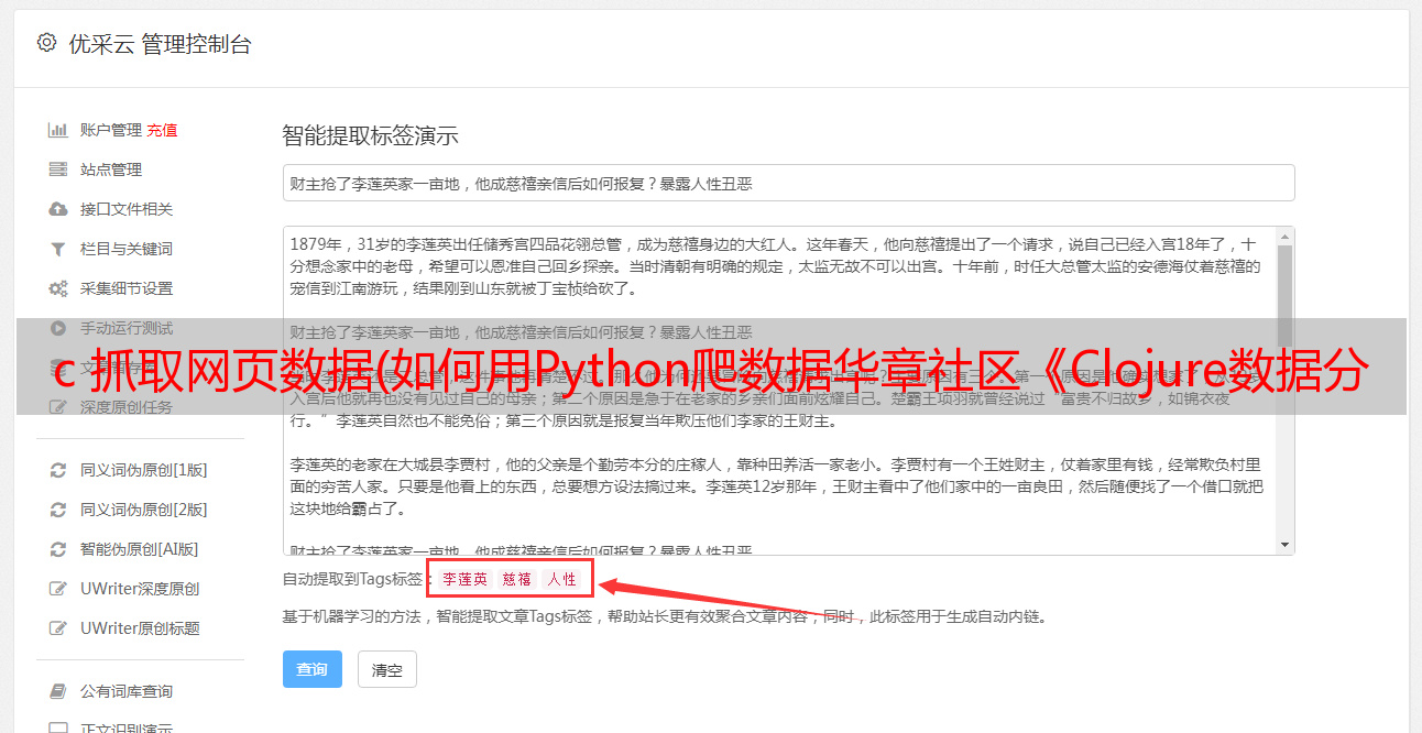 优采云 发布时间: 2021-09-24 04:19c 抓取网页数据(如何用Python爬数据华章社区《Clojure数据分析秘笈》(组图))