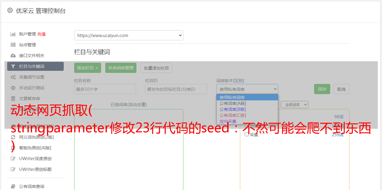 动态网页抓取( stringparameter修改23行代码的seed:不然可能会爬不到东西 )