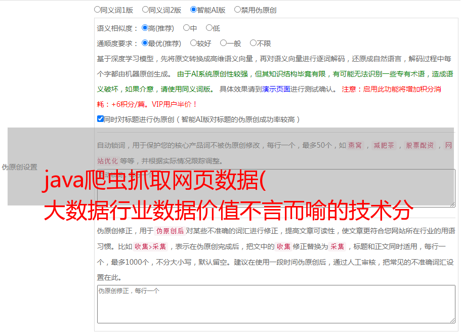 网页上有一些异步加载的数据。爬取这个数据有两种方式:使用模拟浏览器(问题1中描述),或者分析ajax http请求,自己生成ajax请求url,获取返回数据。如果自己生成ajax请求,使用开源爬虫有什么意义?其实还是需要用到开源爬虫的线程池和URL管理功能(比如断点爬取)。