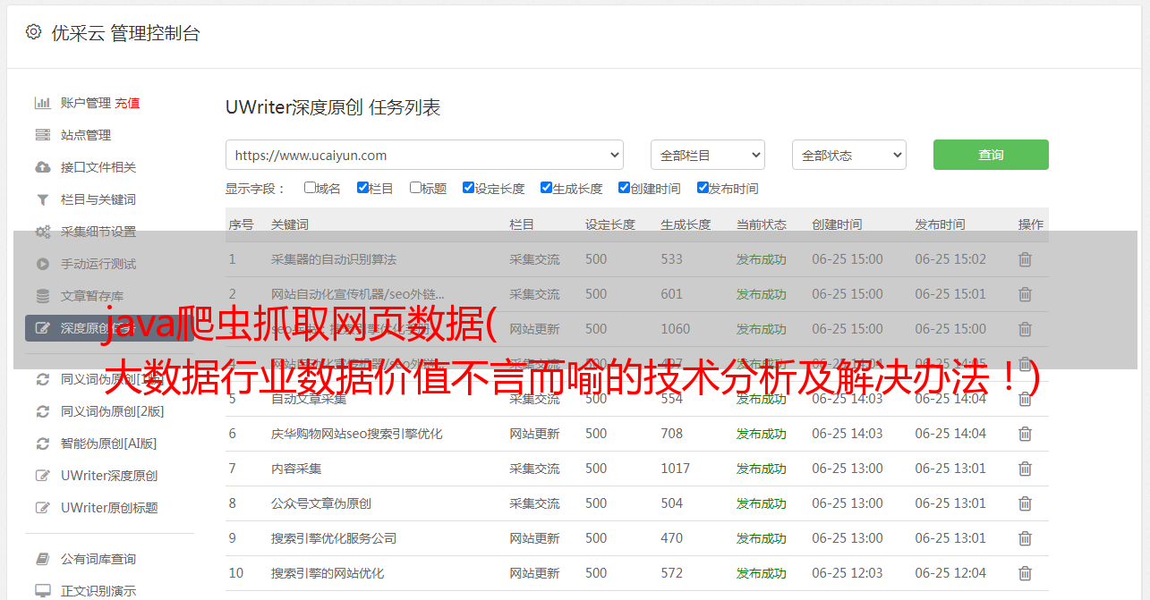 网络爬虫系统的作用是下载网页数据,为搜索引擎系统提供数据源。许多大型互联网搜索引擎系统被称为基于Web数据的搜索引擎系统,如谷歌和百度。这说明了网络爬虫系统在搜索引擎中的重要性。除了供用户阅读的文本信息外,网页还收录一些超链接信息。网络爬虫系统通过网页中的超链接信息不断获取网络上的其他网页。正是因为这个采集进程就像一个爬虫或蜘蛛在网络上漫游,所以被称为网络爬虫系统或网络蜘蛛系统,英文称为Spider或Crawler。