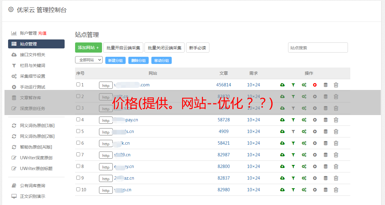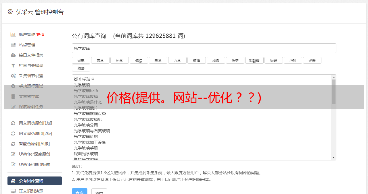 优采云 发布时间: 2021-09-25 18:13价格(提供。网站--优化??)